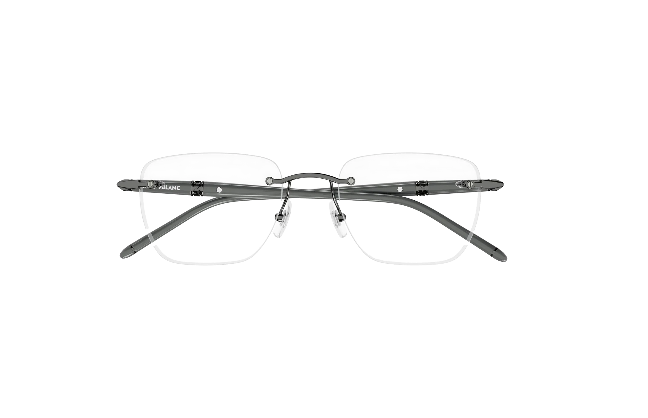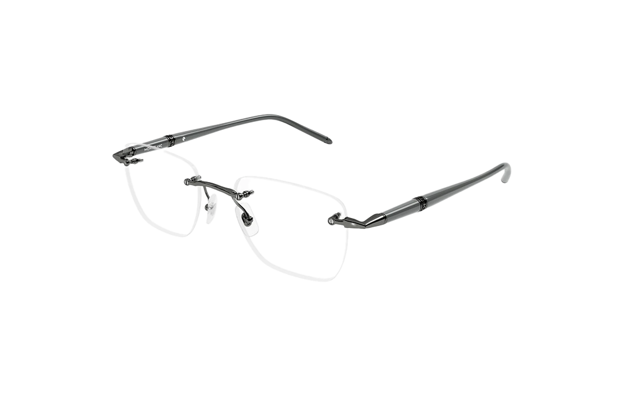 • Temple Details: Grey metal temples with Montblanc logo etched