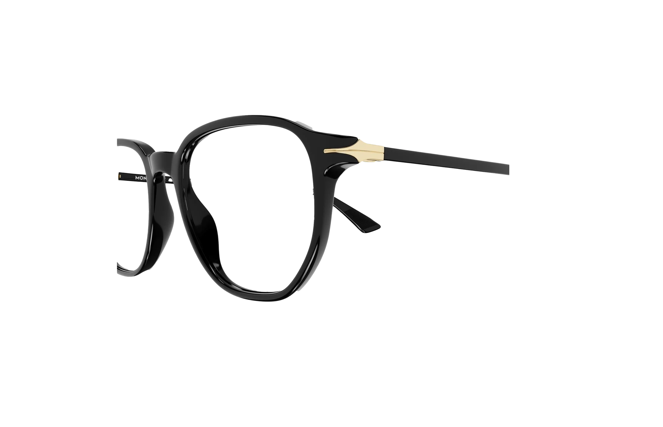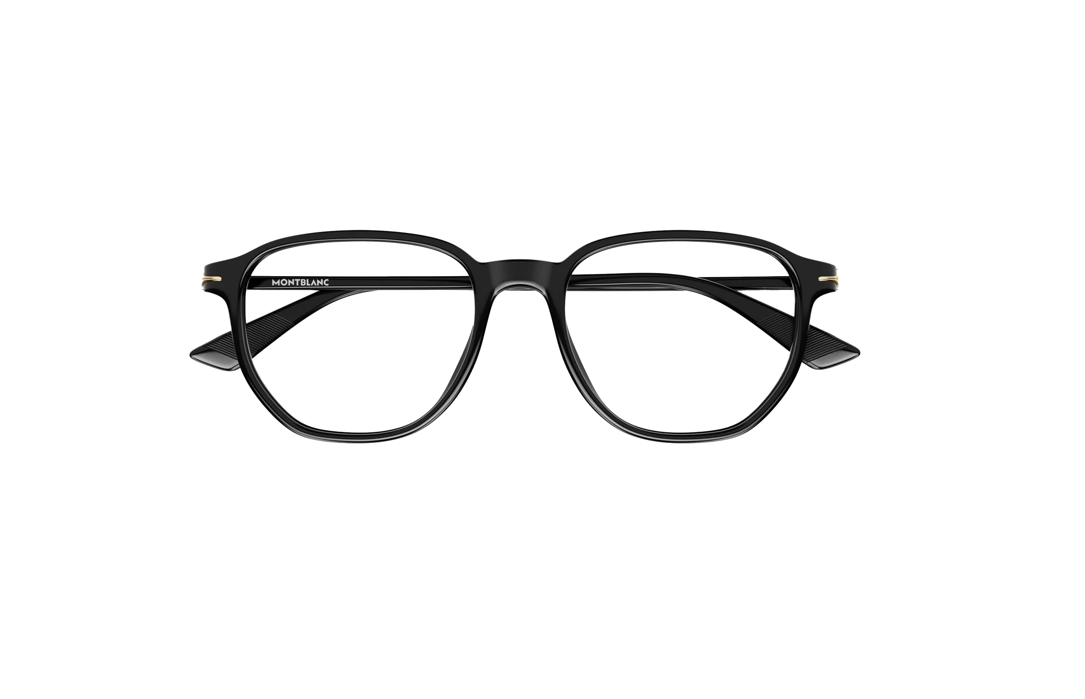 - Temple Details: Metal nib detail on temples; Montblanc lettering logo on right temple